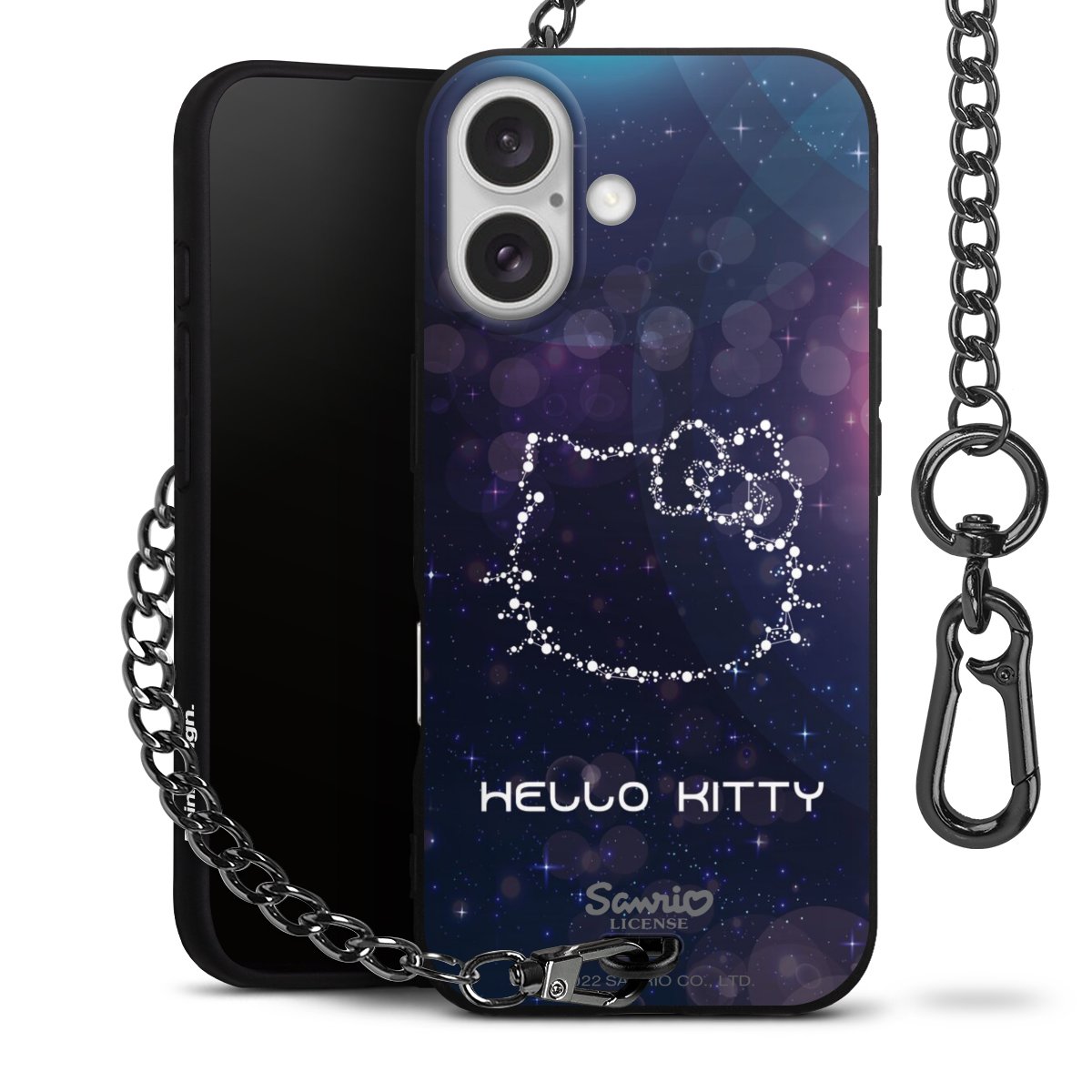 Die Handyhülle verfügt über eine mittig am unteren Rand platzierte Öse, an der die Metallkette stabil befestigt ist. Bestelle die Hülle einfach für Dein Smartphone-Modell, dann passt sie wie angegossen und Du brauchst sie bloß einmal anzudrücken. Handy in die Tasche, Karabiner an den Hosenbund – schon kann die Party starten.