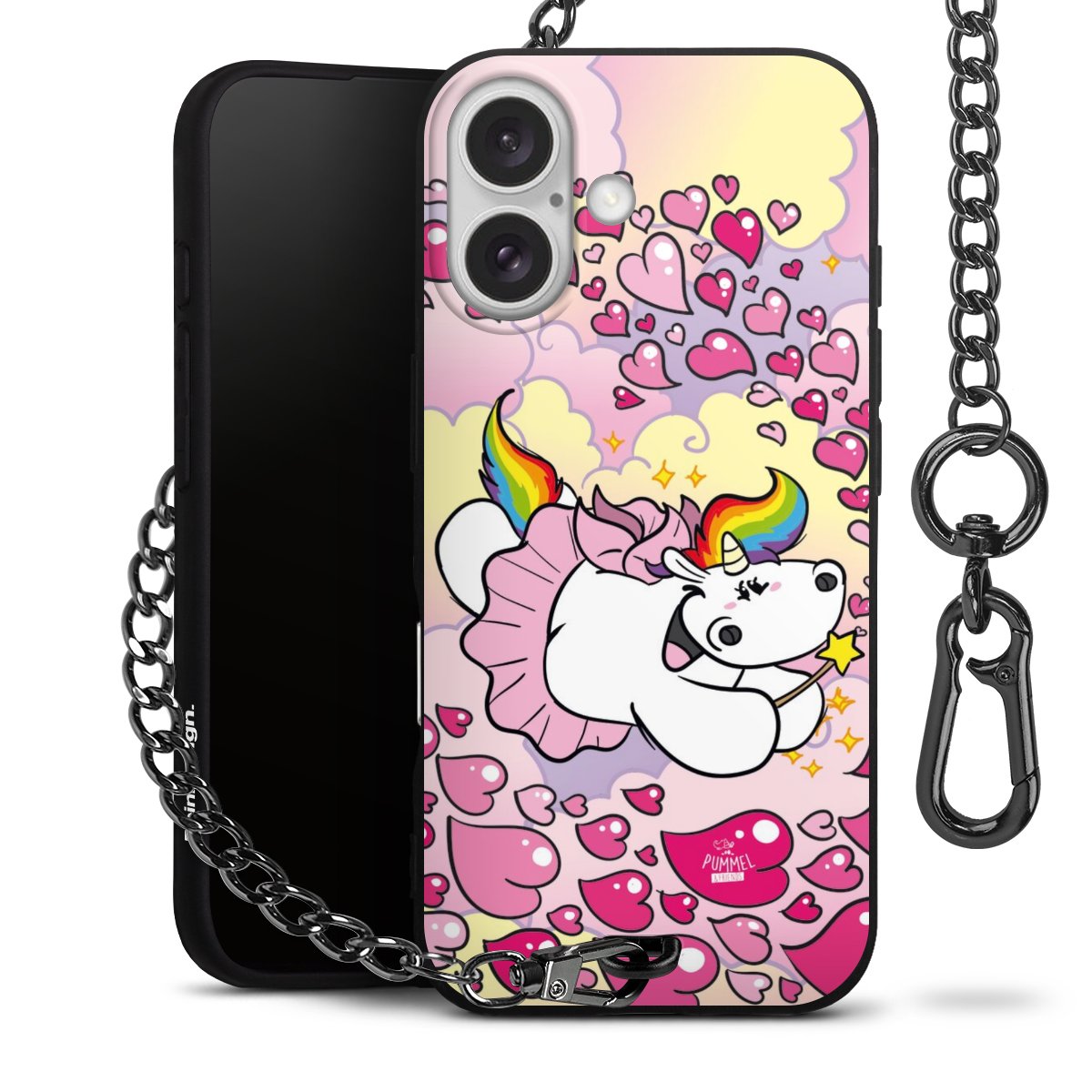 Die mattschwarze Silikon-Handyhülle besteht aus robustem TPU (thermoplastisches Polyurethan). Sie ist flexibel und schützt Dein Smartphone vor Stößen und Kratzern. Die Kette sowie der Karabinerhaken sind aus Metall in Gunmetal-Optik gefertigt. Für dieses Produkt kommen ausschließlich TÜV-geprüfte Materialien zum Einsatz.