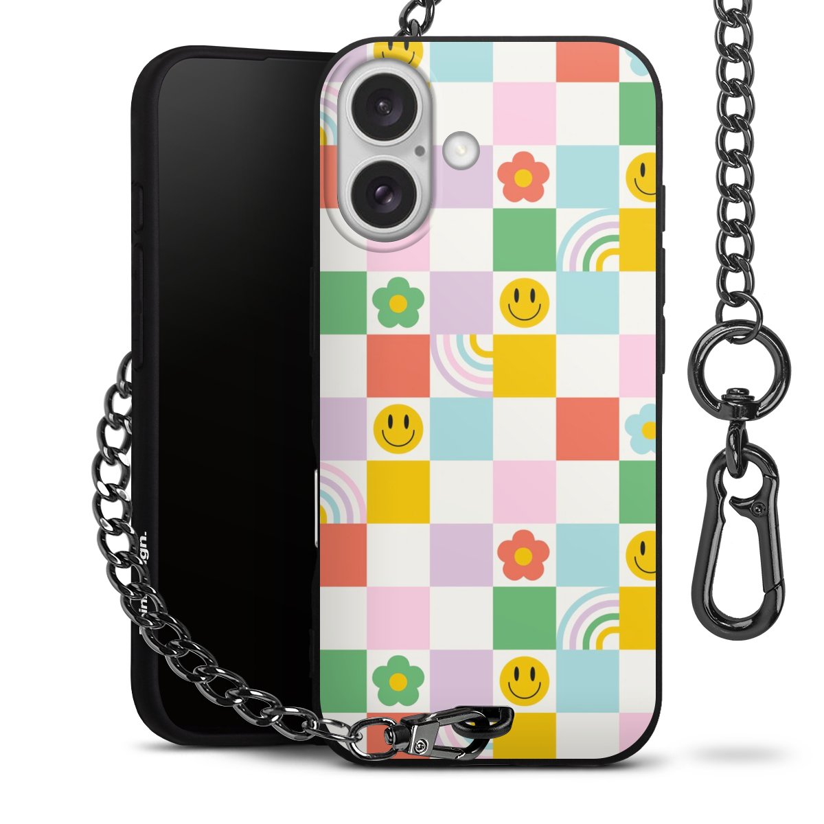 Die mattschwarze Silikon-Handyhülle besteht aus robustem TPU (thermoplastisches Polyurethan). Sie ist flexibel und schützt Dein Smartphone vor Stößen und Kratzern. Die Kette sowie der Karabinerhaken sind aus Metall in Gunmetal-Optik gefertigt. Für dieses Produkt kommen ausschließlich TÜV-geprüfte Materialien zum Einsatz.