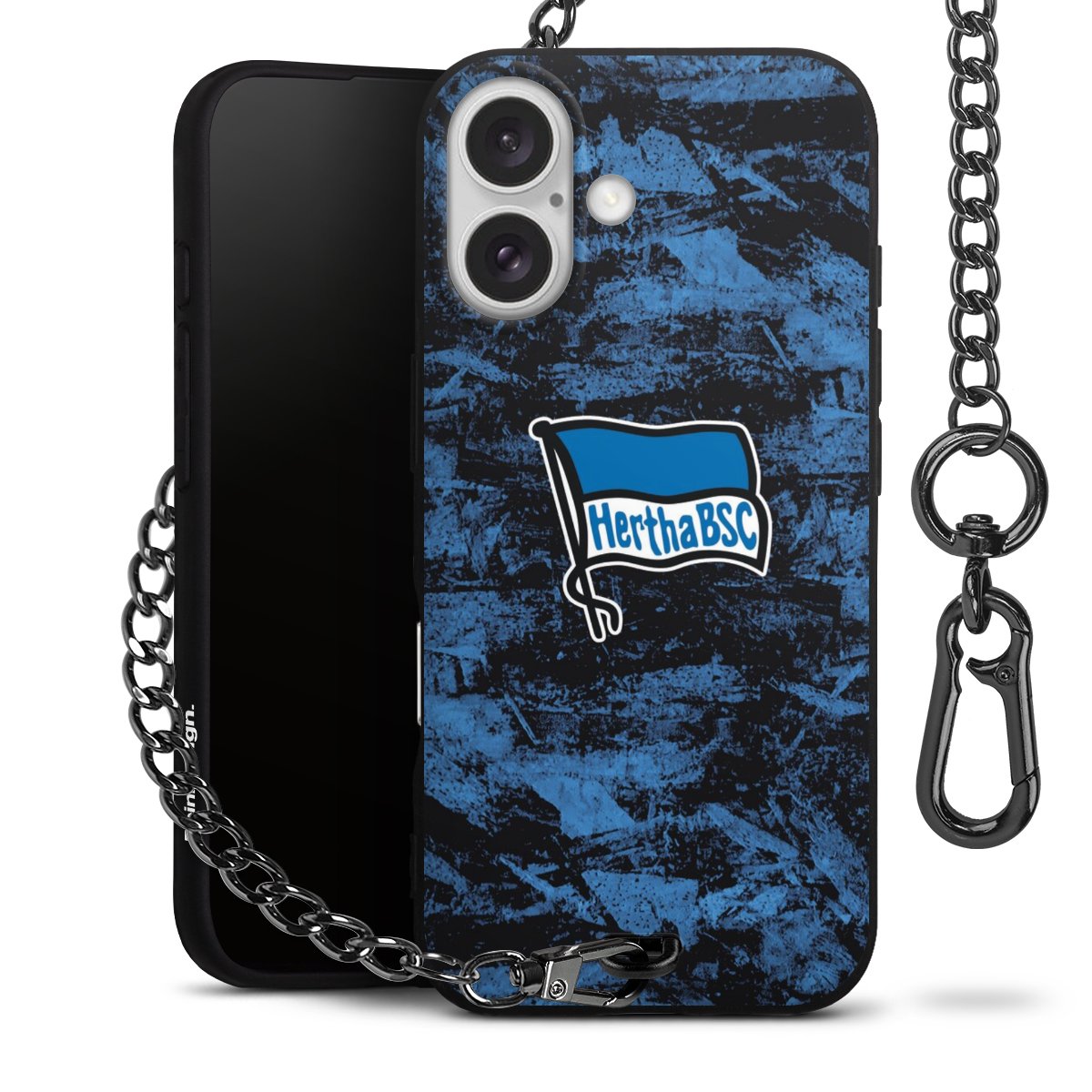 Die mattschwarze Silikon-Handyhülle besteht aus robustem TPU (thermoplastisches Polyurethan). Sie ist flexibel und schützt Dein Smartphone vor Stößen und Kratzern. Die Kette sowie der Karabinerhaken sind aus Metall in Gunmetal-Optik gefertigt. Für dieses Produkt kommen ausschließlich TÜV-geprüfte Materialien zum Einsatz.