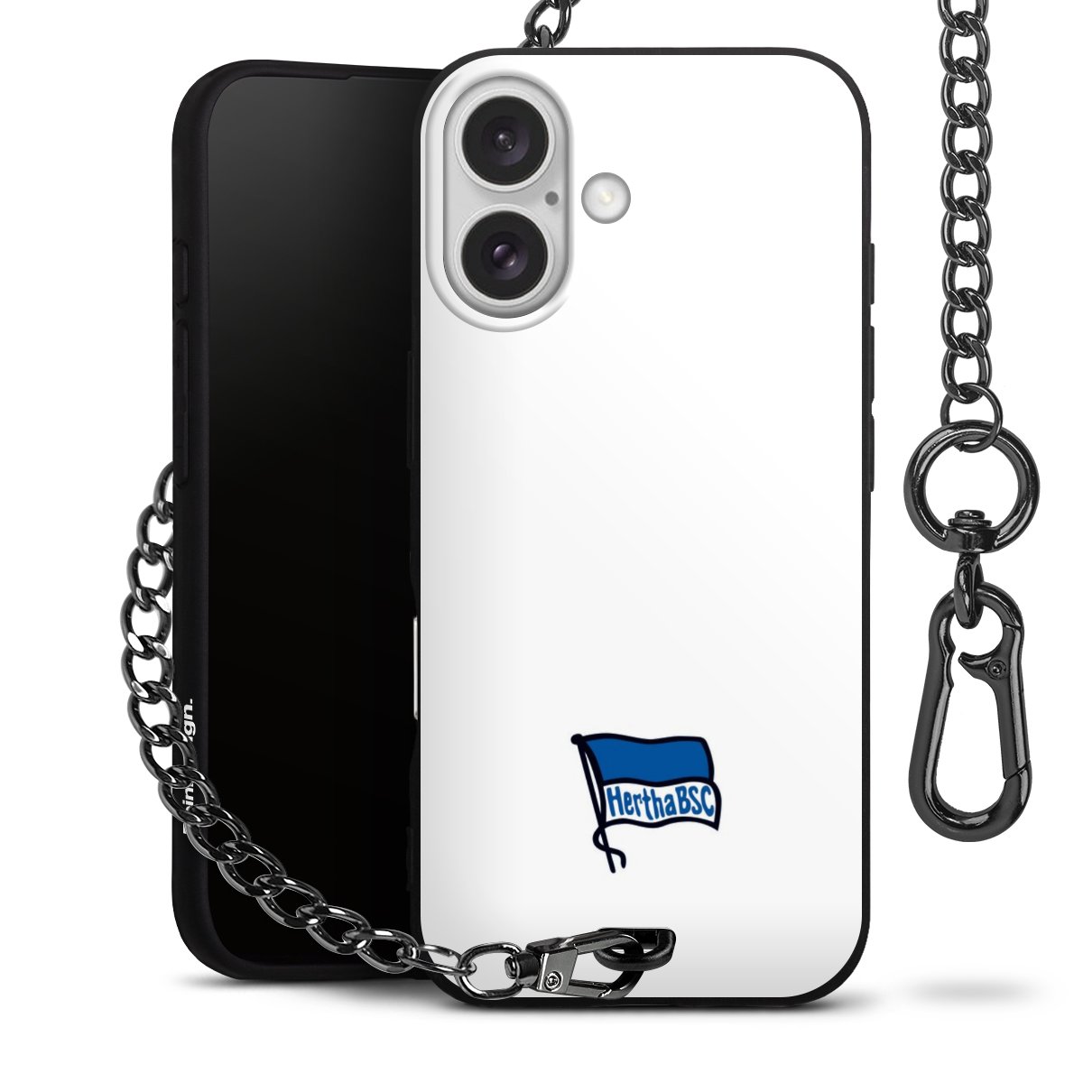 Die mattschwarze Silikon-Handyhülle besteht aus robustem TPU (thermoplastisches Polyurethan). Sie ist flexibel und schützt Dein Smartphone vor Stößen und Kratzern. Die Kette sowie der Karabinerhaken sind aus Metall in Gunmetal-Optik gefertigt. Für dieses Produkt kommen ausschließlich TÜV-geprüfte Materialien zum Einsatz.