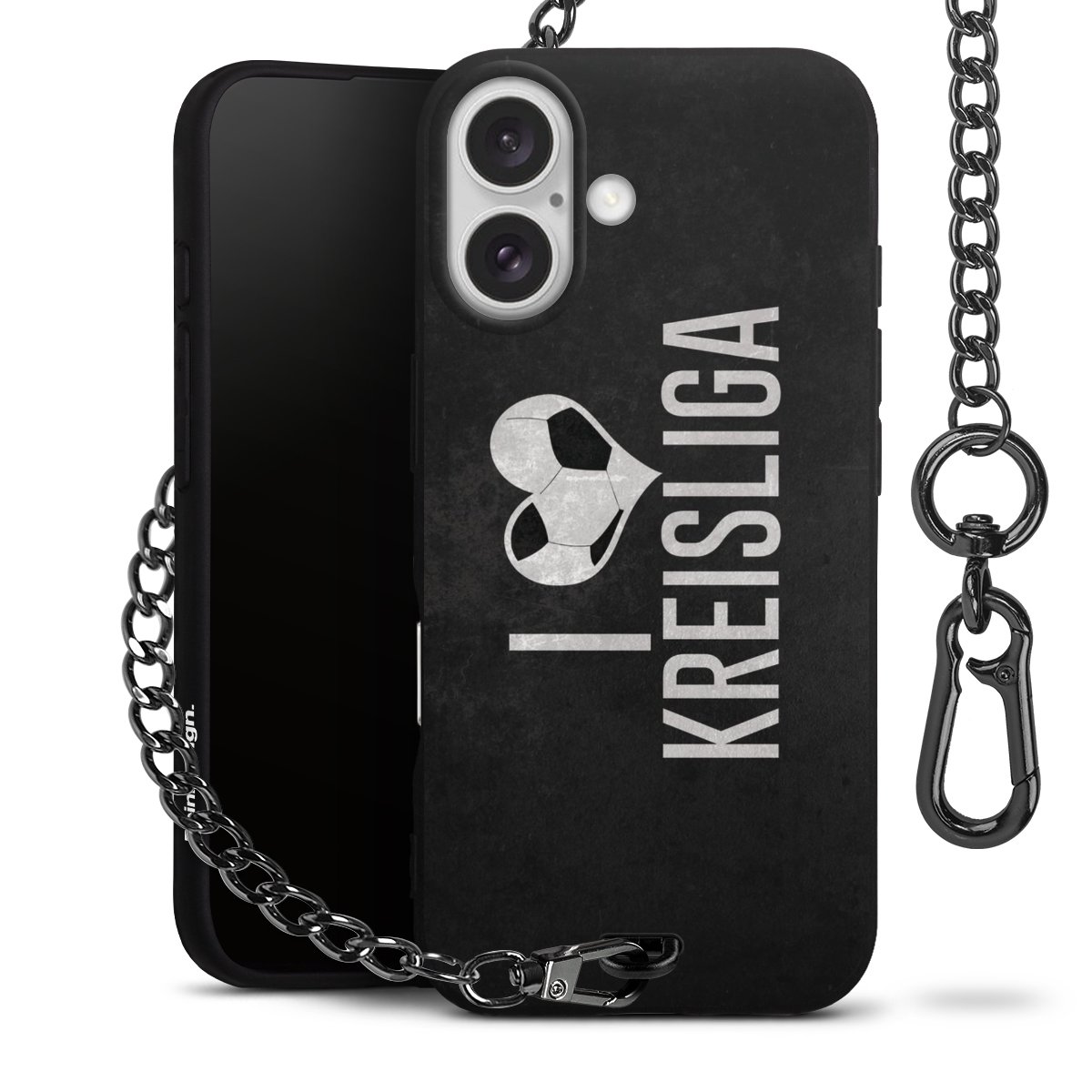 • Mattschwarze Handyhülle mit Metallkette