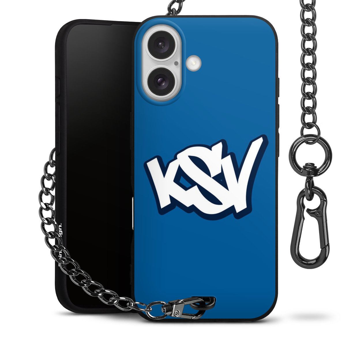 - Mattschwarze Handyhülle mit Metallkette