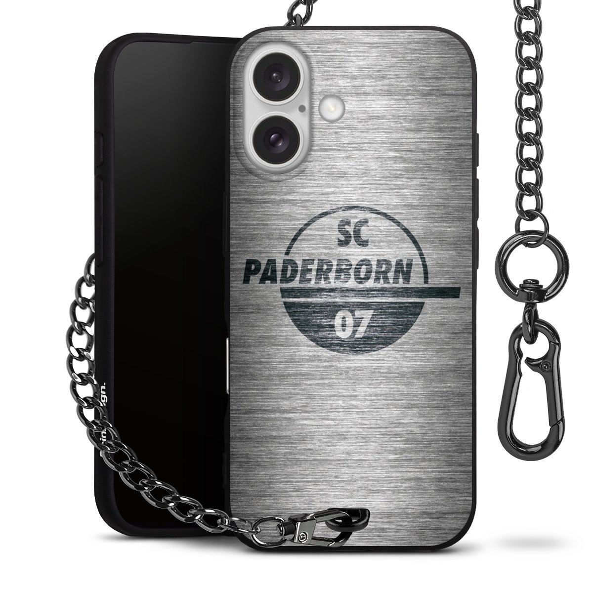 Die mattschwarze Silikon-Handyhülle besteht aus robustem TPU (thermoplastisches Polyurethan). Sie ist flexibel und schützt Dein Smartphone vor Stößen und Kratzern. Die Kette sowie der Karabinerhaken sind aus Metall in Gunmetal-Optik gefertigt. Für dieses Produkt kommen ausschließlich TÜV-geprüfte Materialien zum Einsatz.