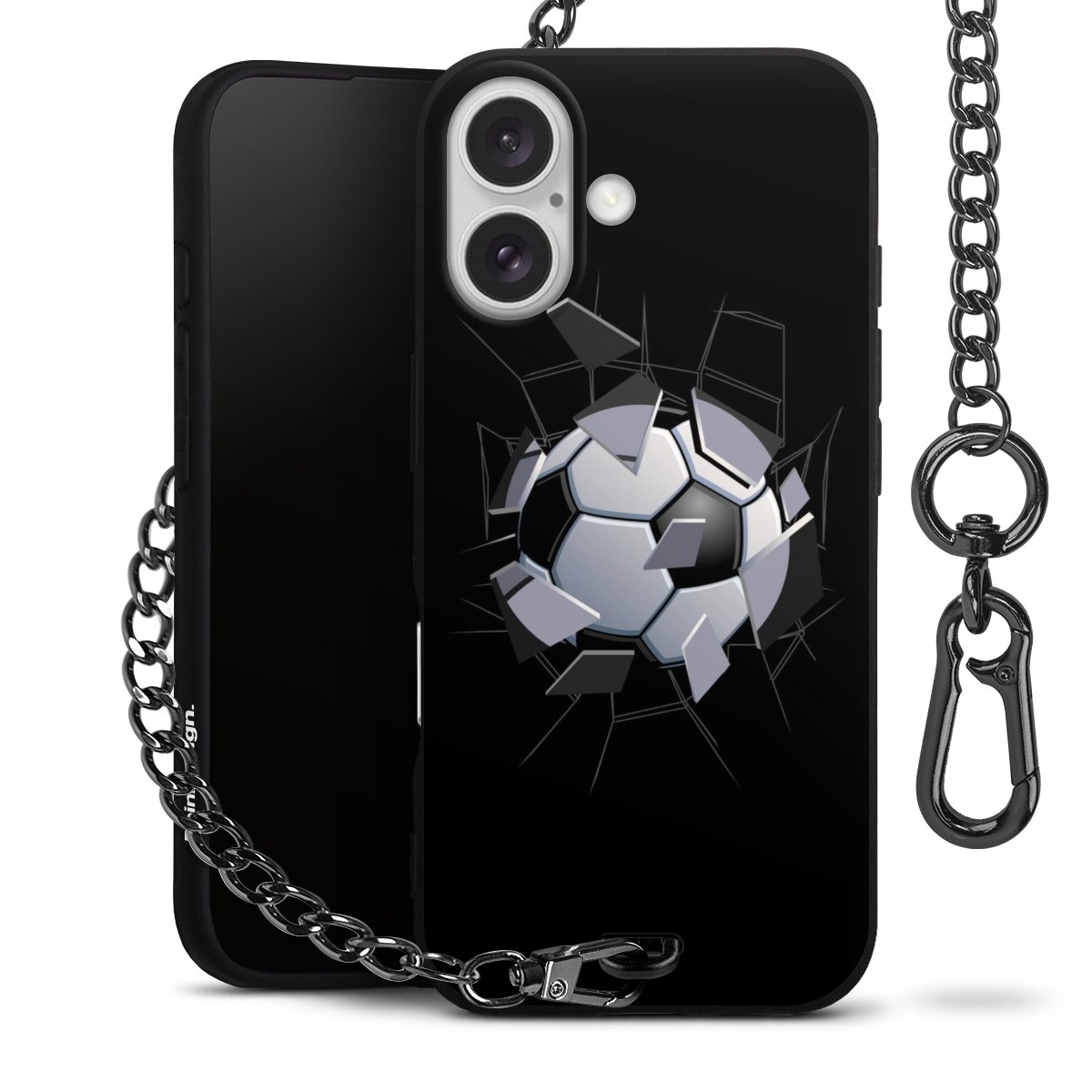 • Mattschwarze Handyhülle mit Metallkette