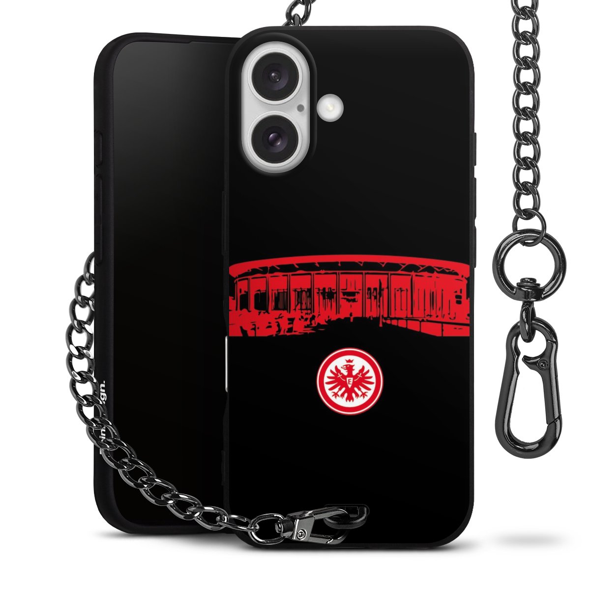 • Mattschwarze Handyhülle mit Metallkette