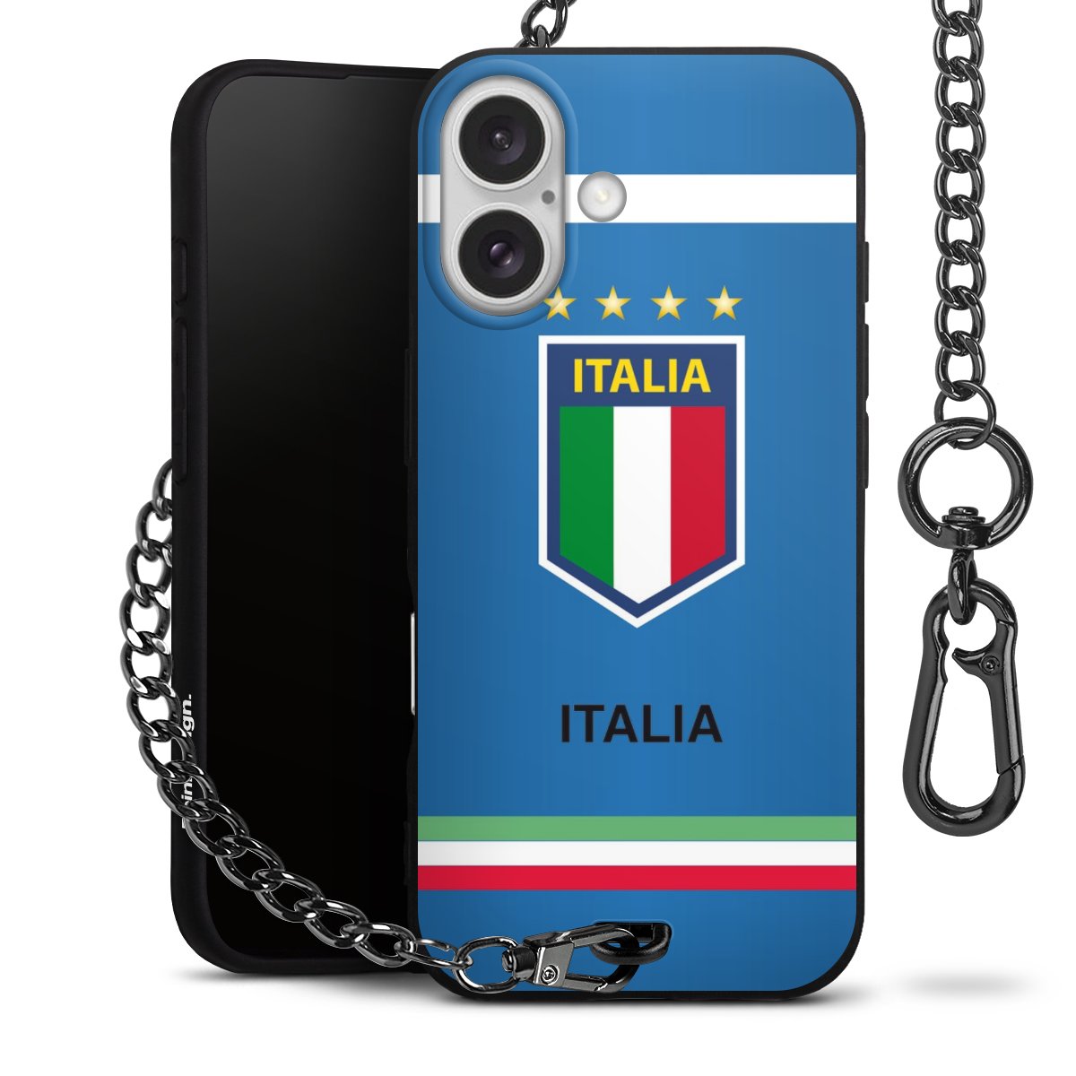 • Mattschwarze Handyhülle mit Metallkette