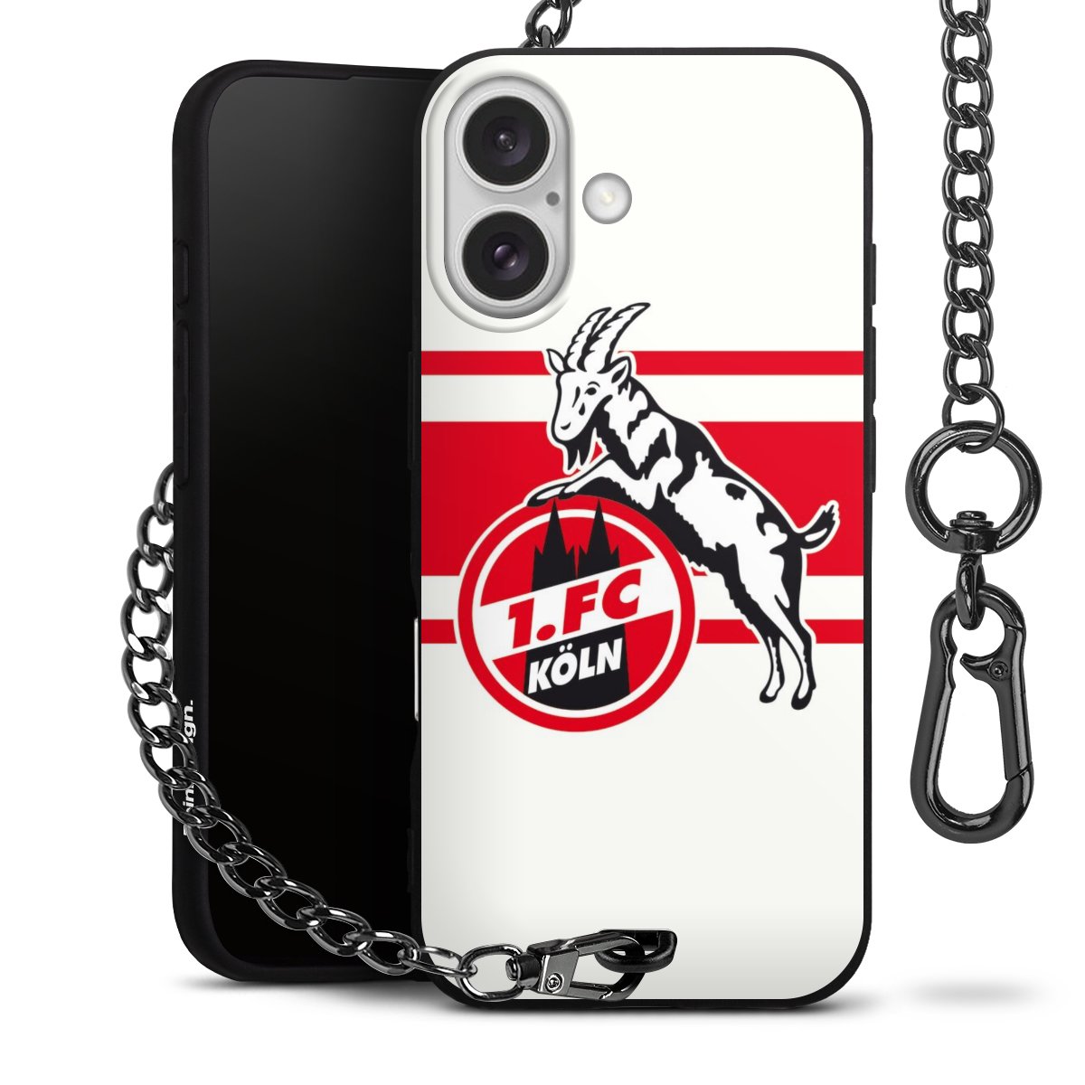 Die Handyhülle verfügt über eine mittig am unteren Rand platzierte Öse, an der die Metallkette stabil befestigt ist. Bestelle die Hülle einfach für Dein Smartphone-Modell, dann passt sie wie angegossen und Du brauchst sie bloß einmal anzudrücken. Handy in die Tasche, Karabiner an den Hosenbund – schon kann die Party starten.
