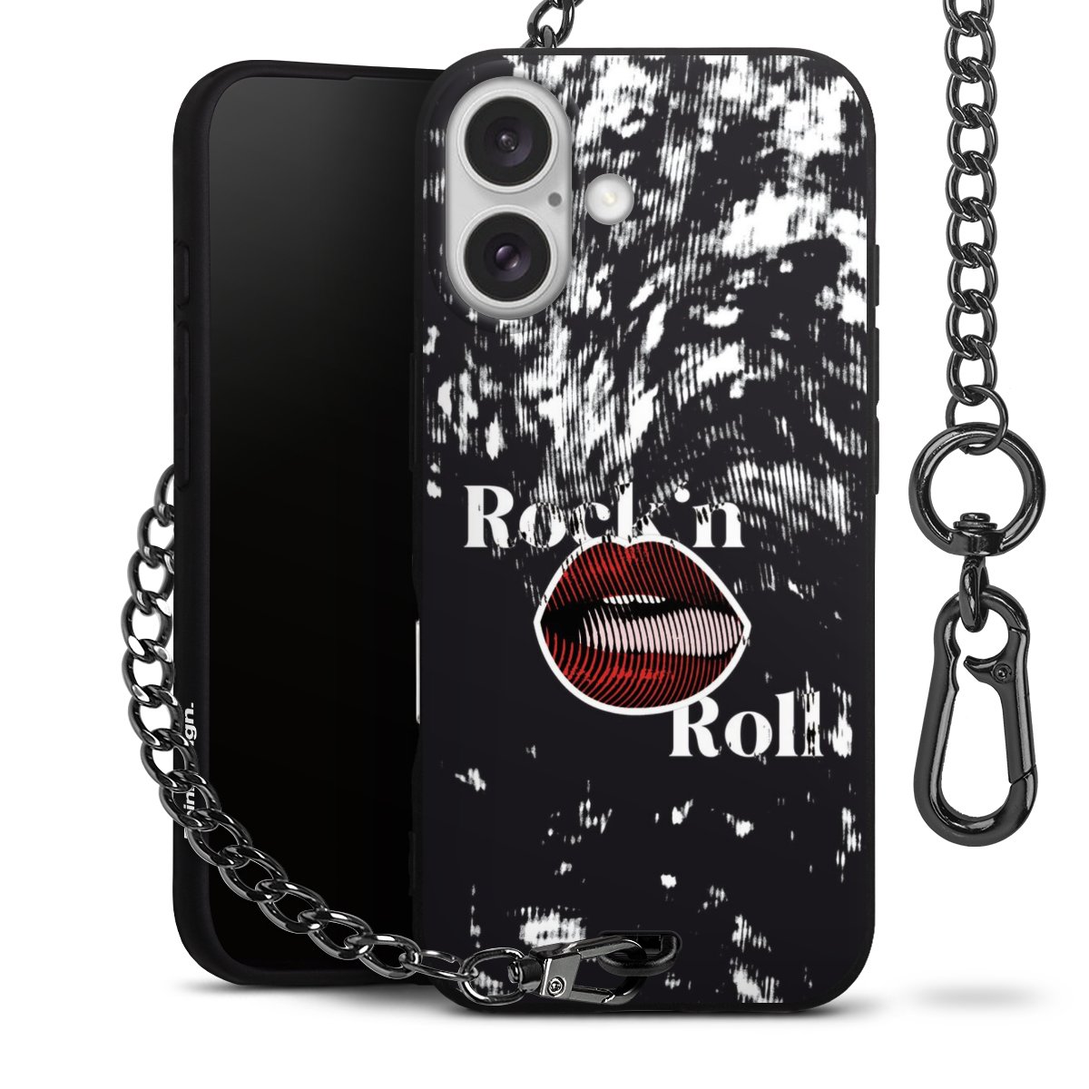 - Mattschwarze Handyhülle mit Metallkette