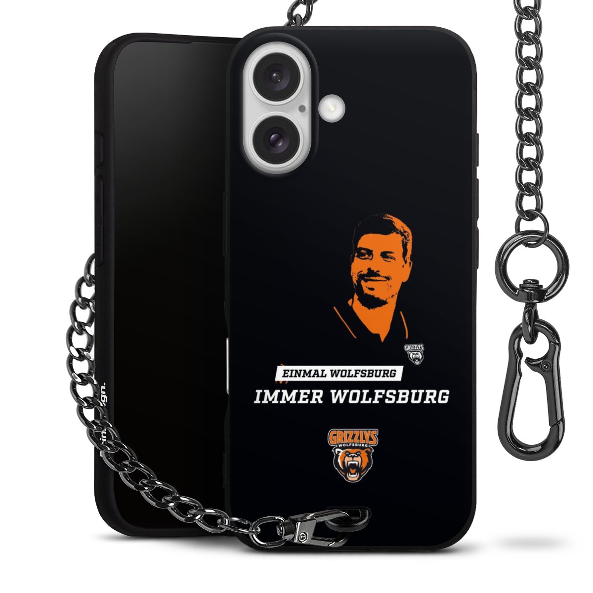 - Mattschwarze Handyhülle mit Metallkette