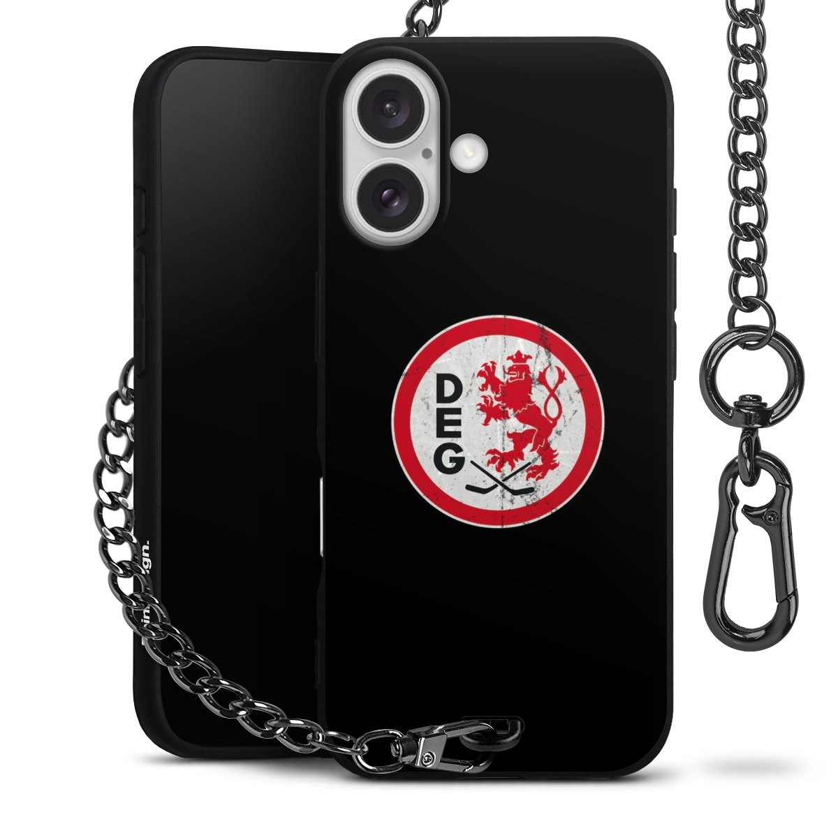 Die mattschwarze Silikon-Handyhülle besteht aus robustem TPU (thermoplastisches Polyurethan). Sie ist flexibel und schützt Dein Smartphone vor Stößen und Kratzern. Die Kette sowie der Karabinerhaken sind aus Metall in Gunmetal-Optik gefertigt. Für dieses Produkt kommen ausschließlich TÜV-geprüfte Materialien zum Einsatz.