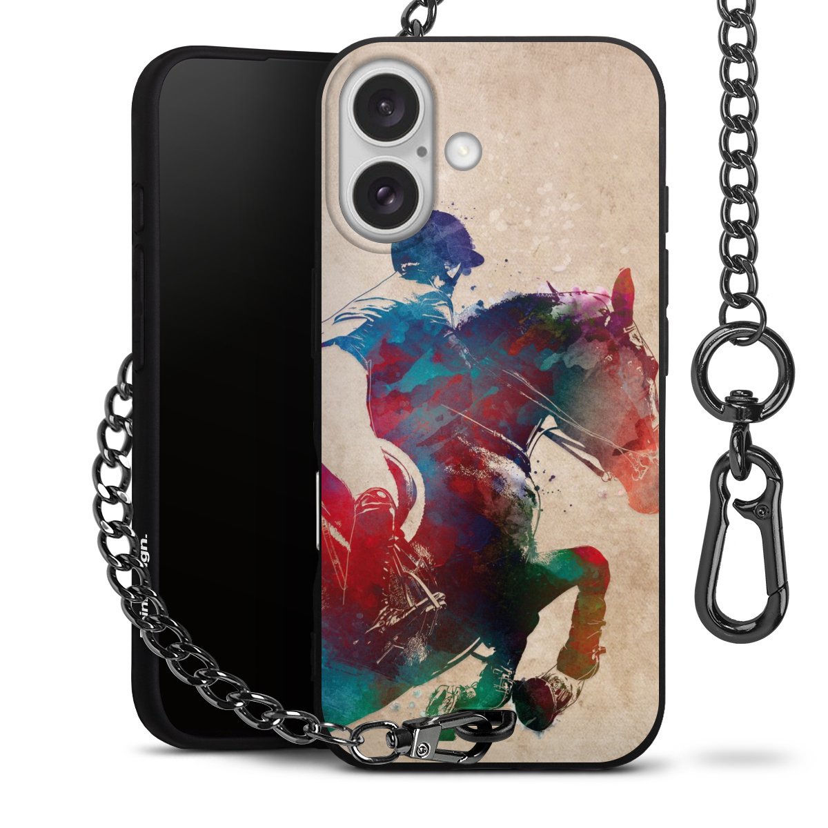 • Mattschwarze Handyhülle mit Metallkette