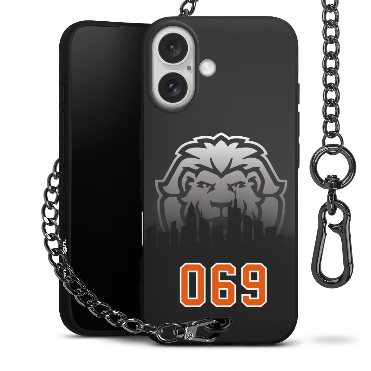 - Mattschwarze Handyhülle mit Metallkette