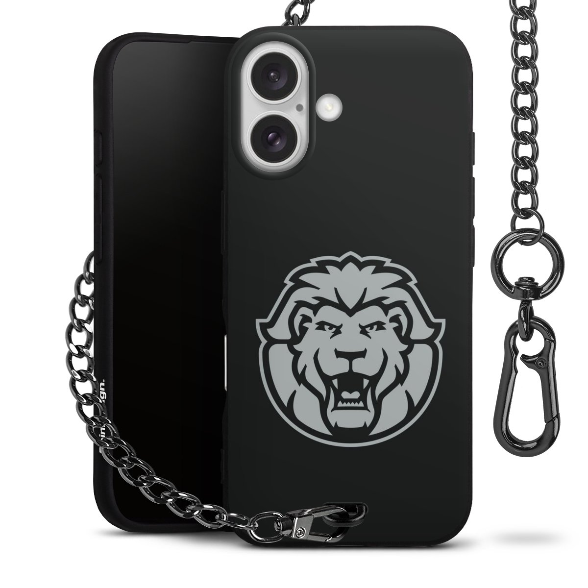 - Mattschwarze Handyhülle mit Metallkette