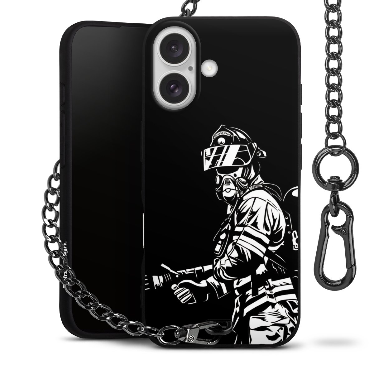 - Mattschwarze Handyhülle mit Metallkette