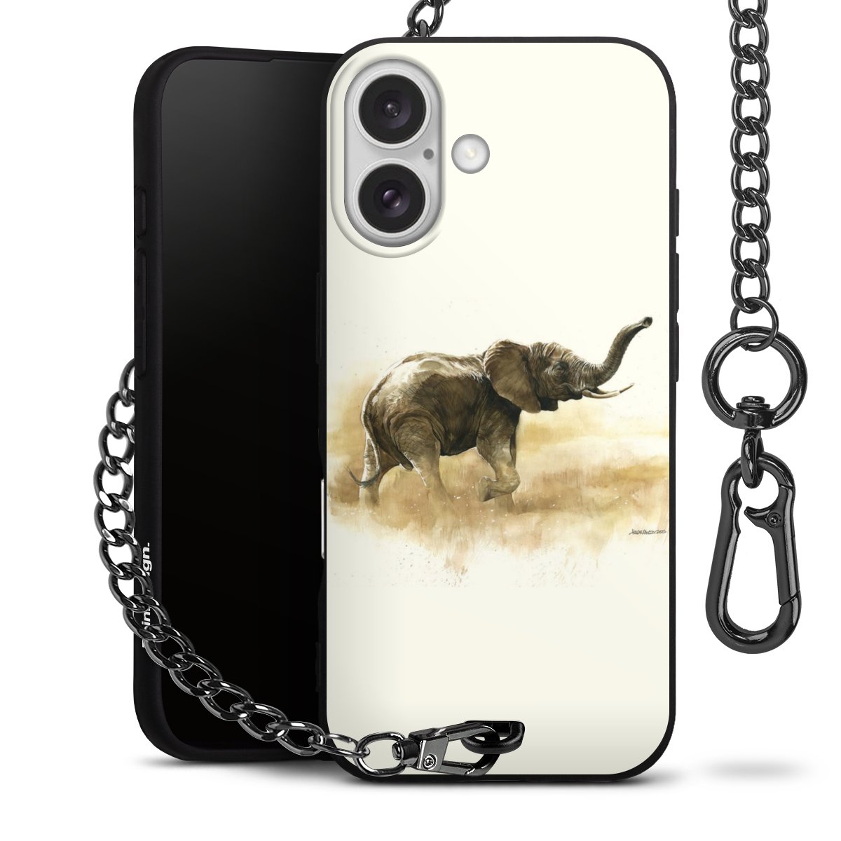 • Mattschwarze Handyhülle mit Metallkette