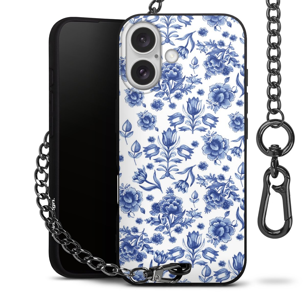 - Mattschwarze Handyhülle mit Metallkette