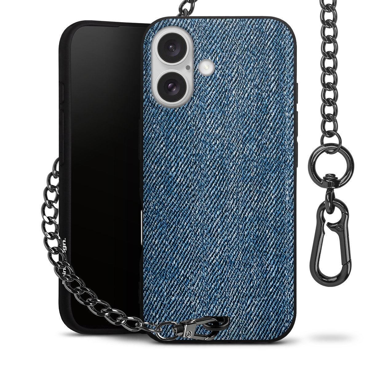 • Mattschwarze Handyhülle mit Metallkette