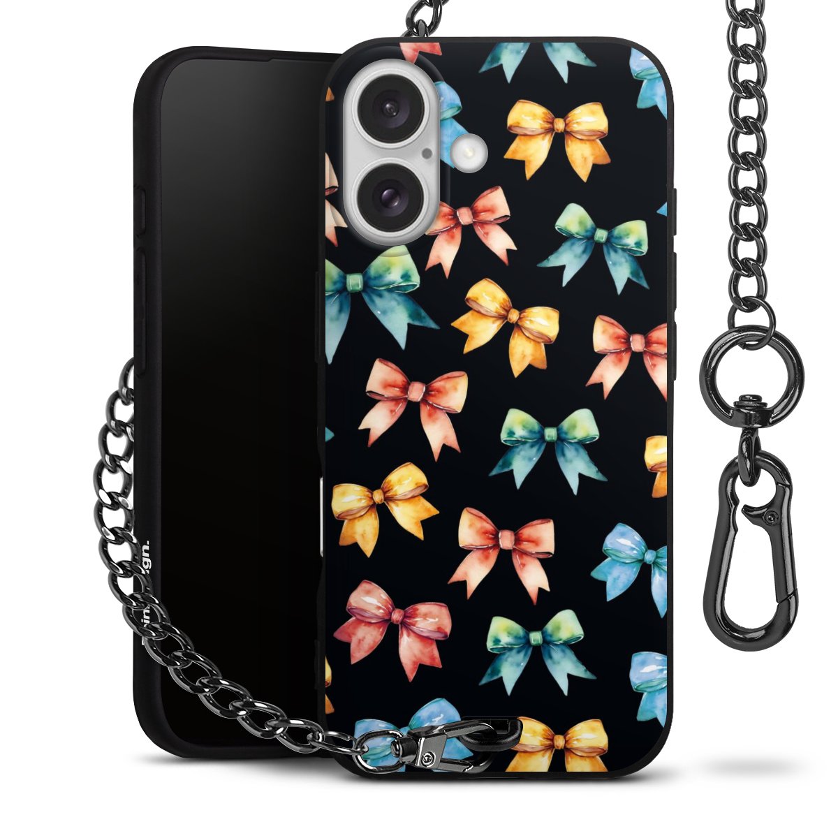 • Mattschwarze Handyhülle mit Metallkette