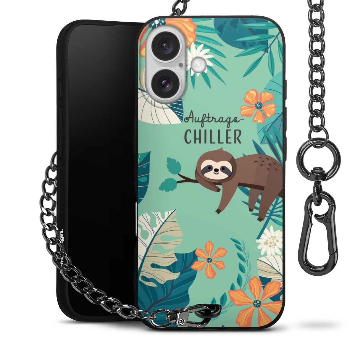 - Mattschwarze Handyhülle mit Metallkette