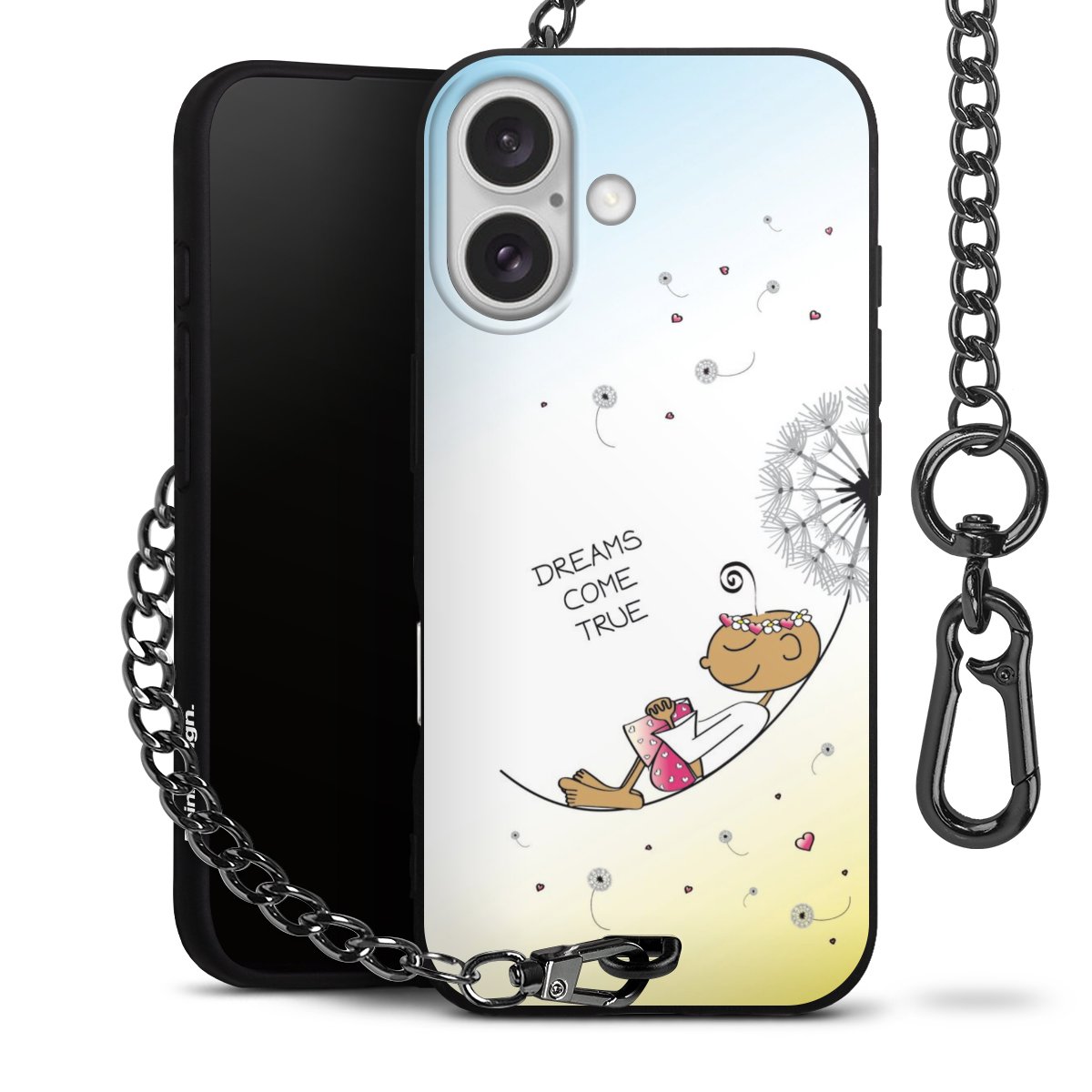 • Mattschwarze Handyhülle mit Metallkette