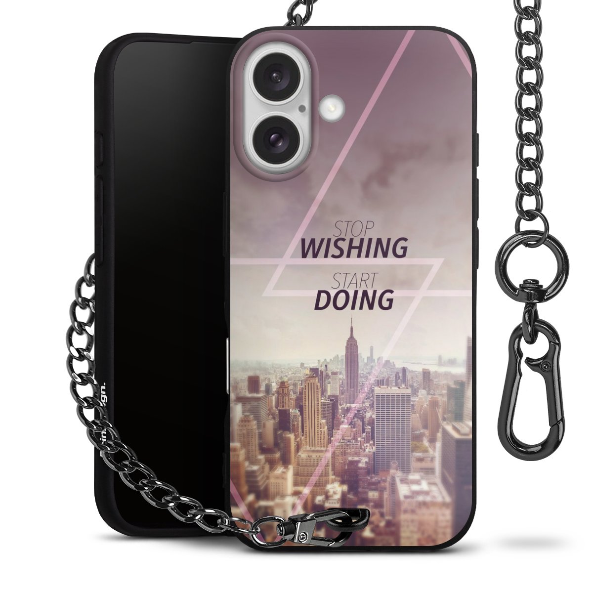 - Mattschwarze Handyhülle mit Metallkette