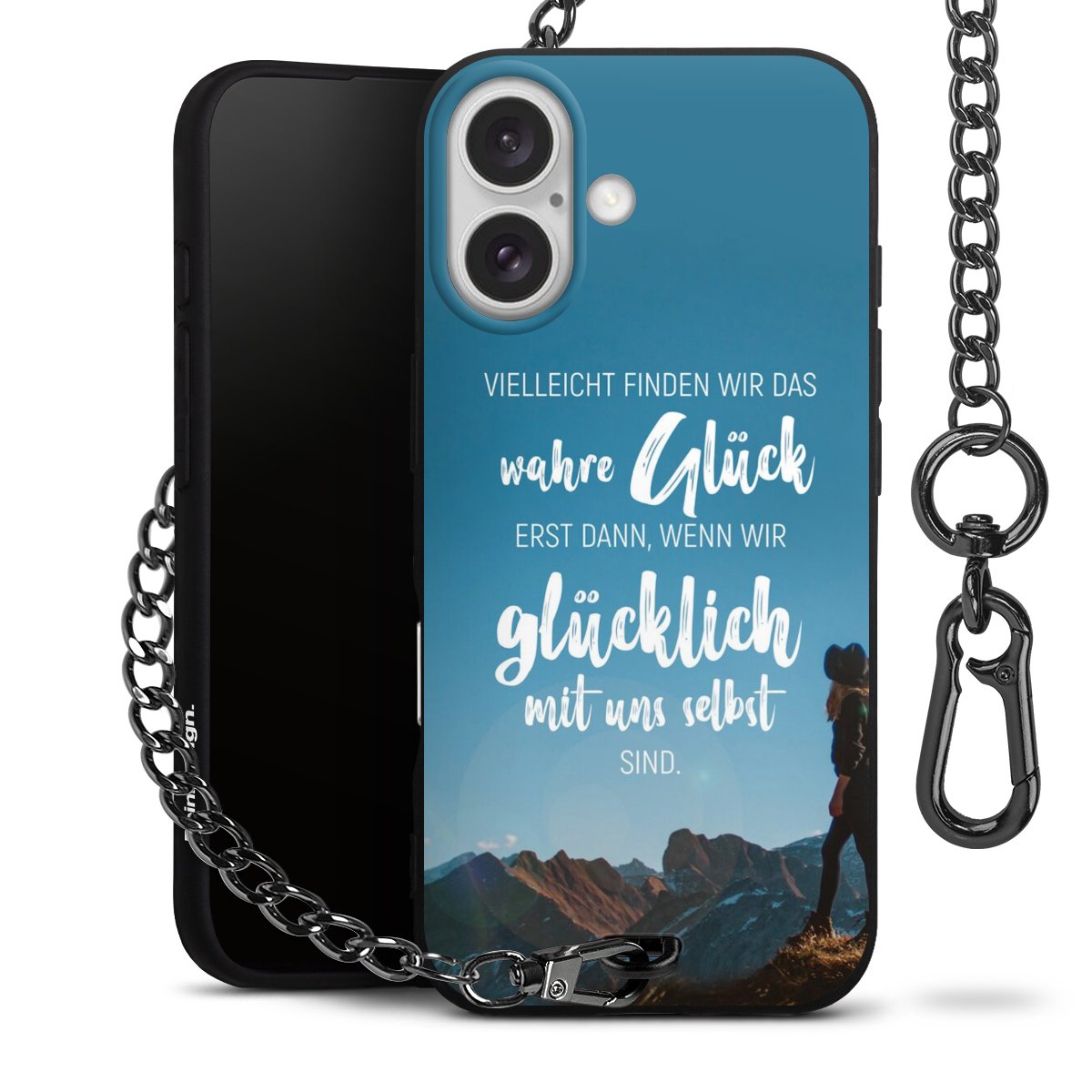 Die mattschwarze Silikon-Handyhülle besteht aus robustem TPU (thermoplastisches Polyurethan). Sie ist flexibel und schützt Dein Smartphone vor Stößen und Kratzern. Die Kette sowie der Karabinerhaken sind aus Metall in Gunmetal-Optik gefertigt. Für dieses Produkt kommen ausschließlich TÜV-geprüfte Materialien zum Einsatz.