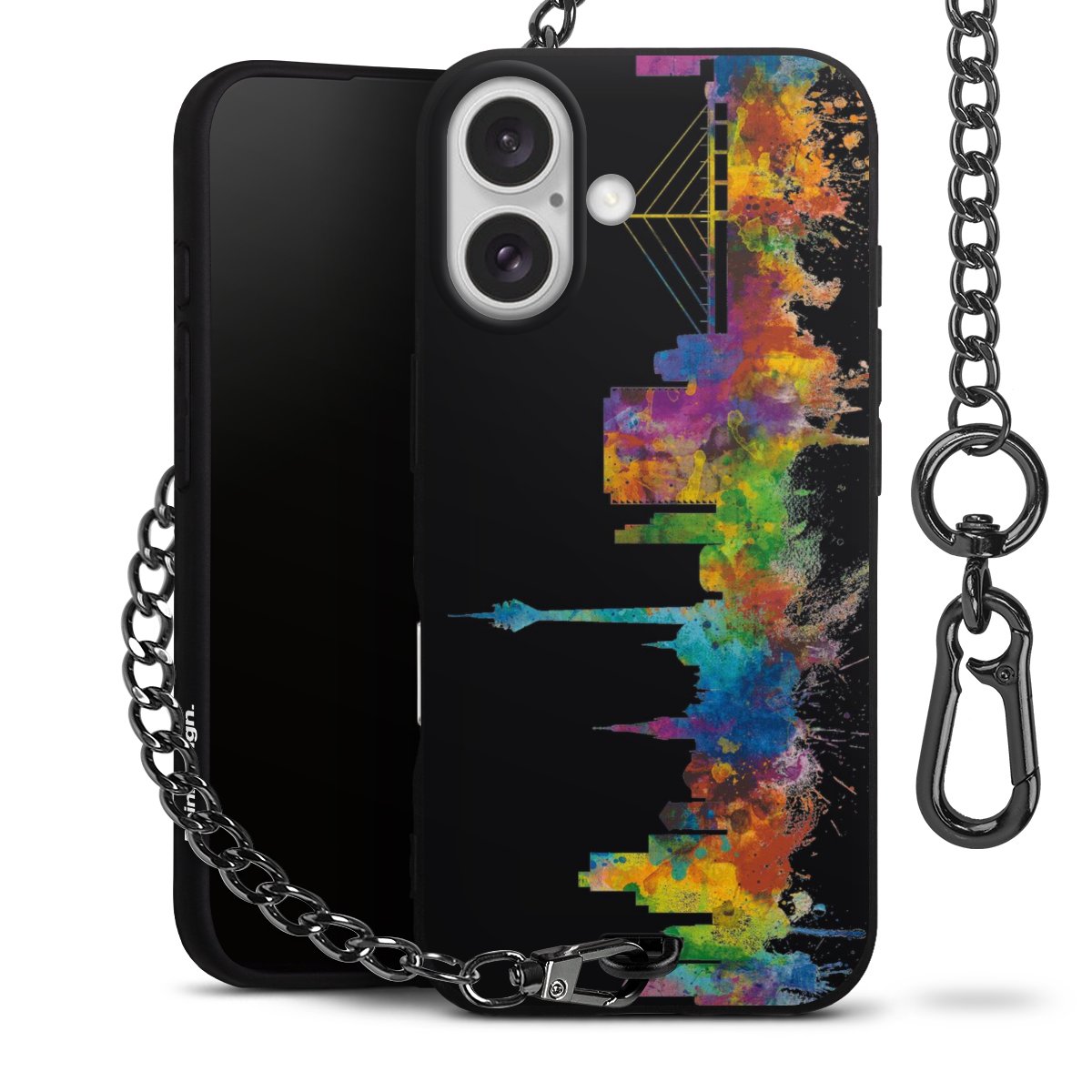 Die mattschwarze Silikon-Handyhülle besteht aus robustem TPU (thermoplastisches Polyurethan). Sie ist flexibel und schützt Dein Smartphone vor Stößen und Kratzern. Die Kette sowie der Karabinerhaken sind aus Metall in Gunmetal-Optik gefertigt. Für dieses Produkt kommen ausschließlich TÜV-geprüfte Materialien zum Einsatz.