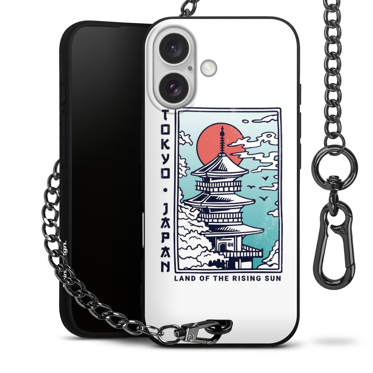 Die mattschwarze Silikon-Handyhülle besteht aus robustem TPU (thermoplastisches Polyurethan). Sie ist flexibel und schützt Dein Smartphone vor Stößen und Kratzern. Die Kette sowie der Karabinerhaken sind aus Metall in Gunmetal-Optik gefertigt. Für dieses Produkt kommen ausschließlich TÜV-geprüfte Materialien zum Einsatz.