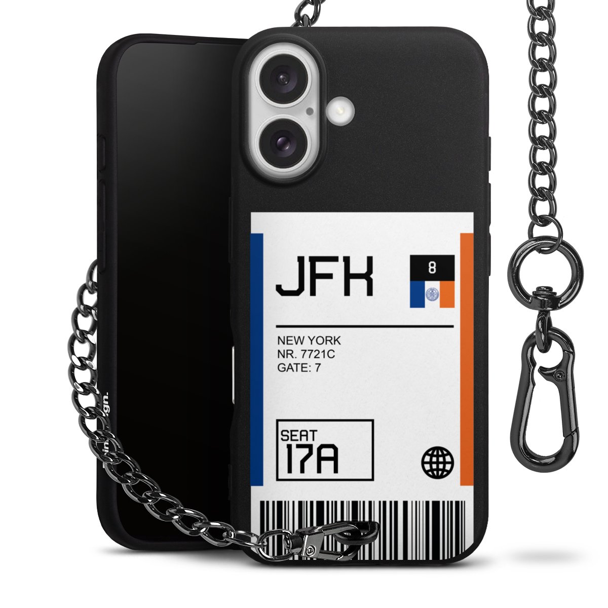 - Mattschwarze Handyhülle mit Metallkette