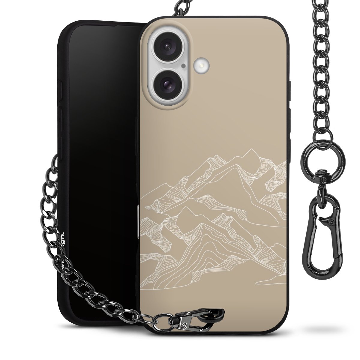 - Mattschwarze Handyhülle mit Metallkette