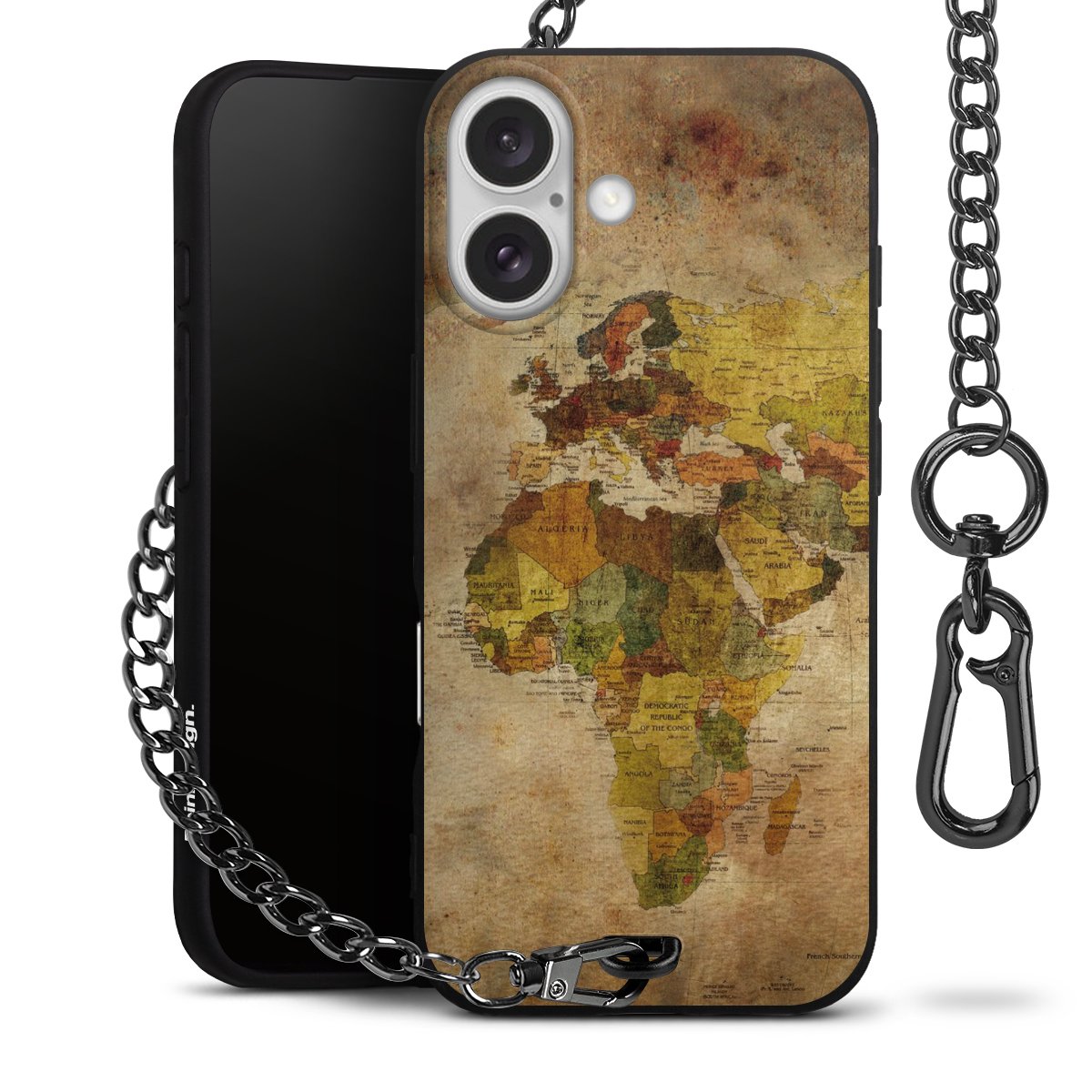 - Mattschwarze Handyhülle mit Metallkette