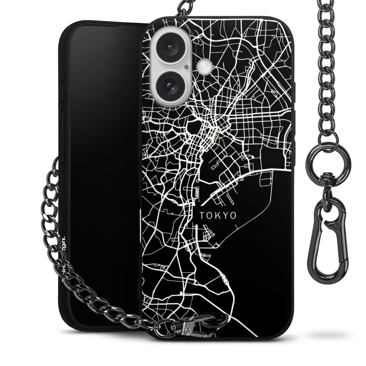 - Mattschwarze Handyhülle mit Metallkette