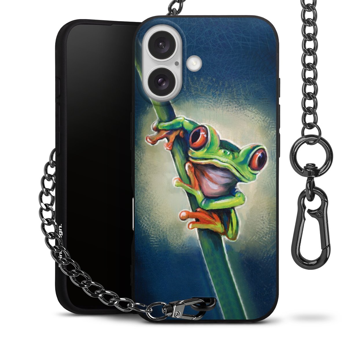• Mattschwarze Handyhülle mit Metallkette