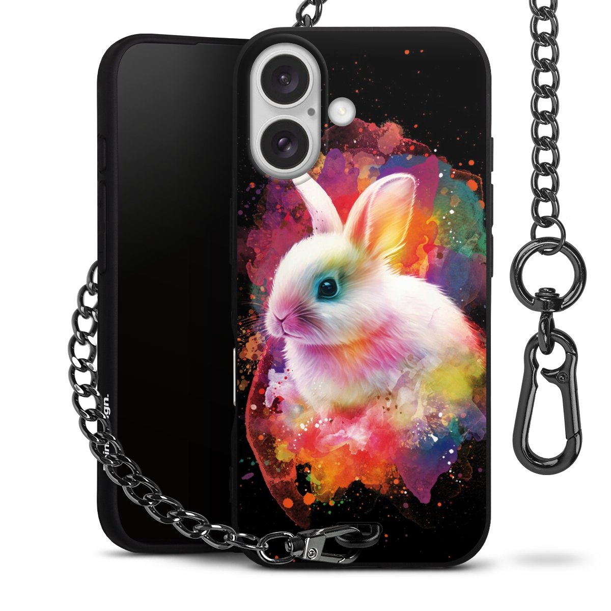 • Mattschwarze Handyhülle mit Metallkette
