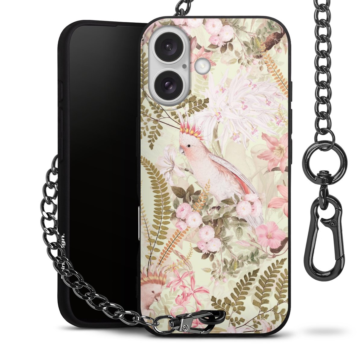 Die mattschwarze Silikon-Handyhülle besteht aus robustem TPU (thermoplastisches Polyurethan). Sie ist flexibel und schützt Dein Smartphone vor Stößen und Kratzern. Die Kette sowie der Karabinerhaken sind aus Metall in Gunmetal-Optik gefertigt. Für dieses Produkt kommen ausschließlich TÜV-geprüfte Materialien zum Einsatz.