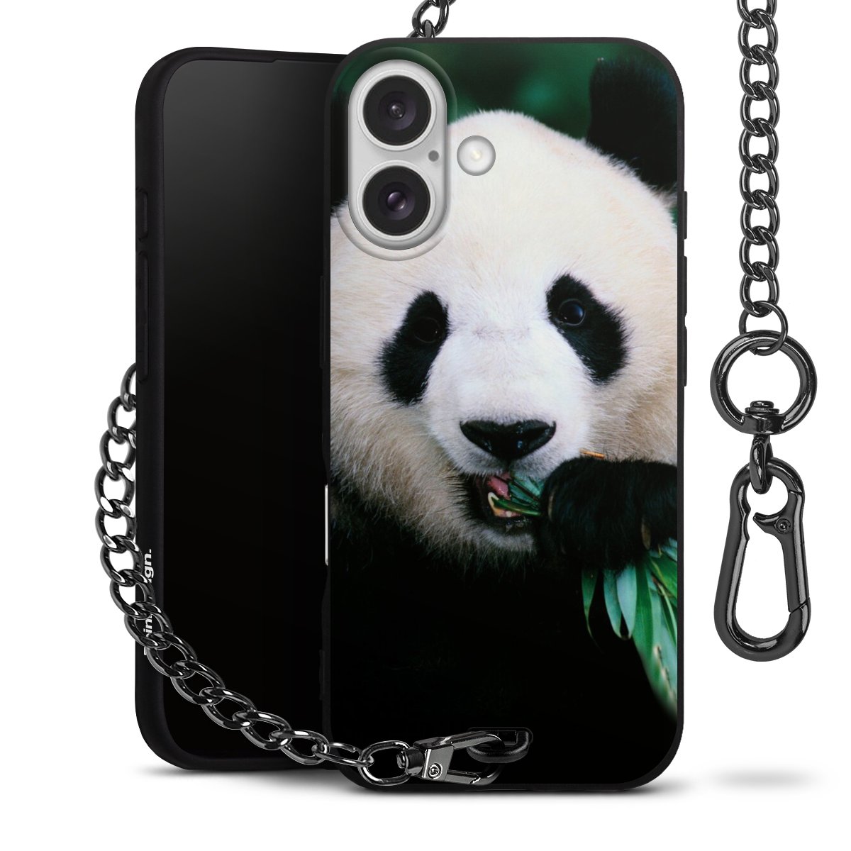 - Mattschwarze Handyhülle mit Metallkette