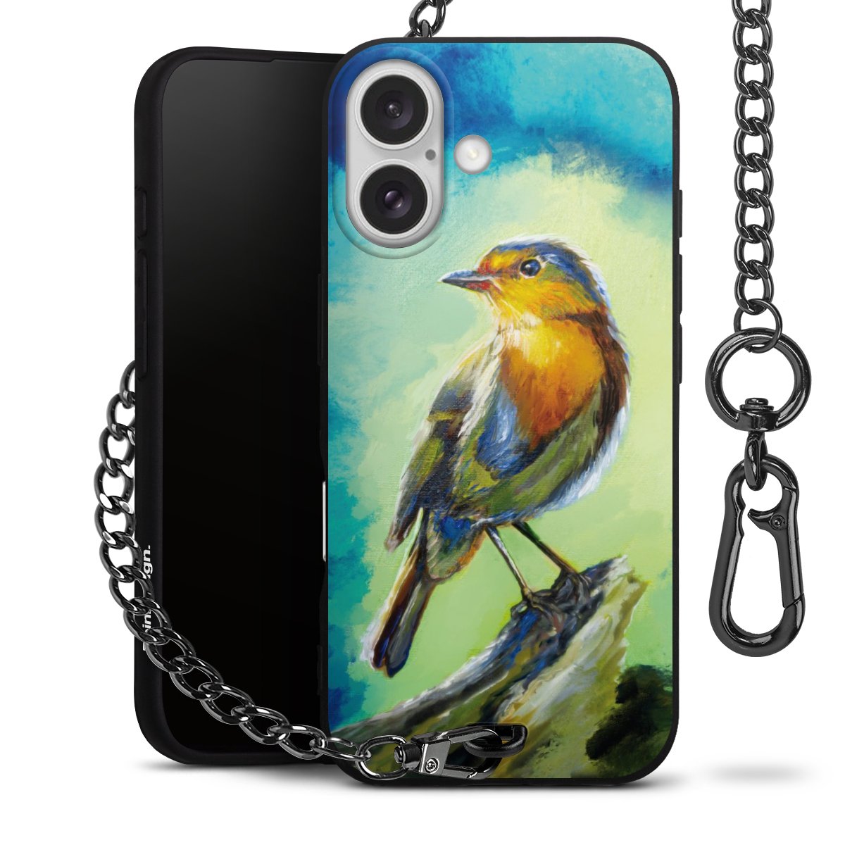 • Mattschwarze Handyhülle mit Metallkette