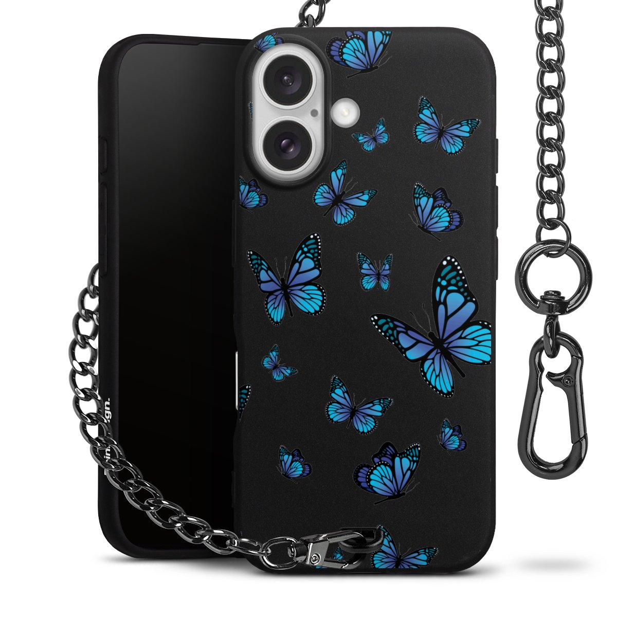 - Mattschwarze Handyhülle mit Metallkette