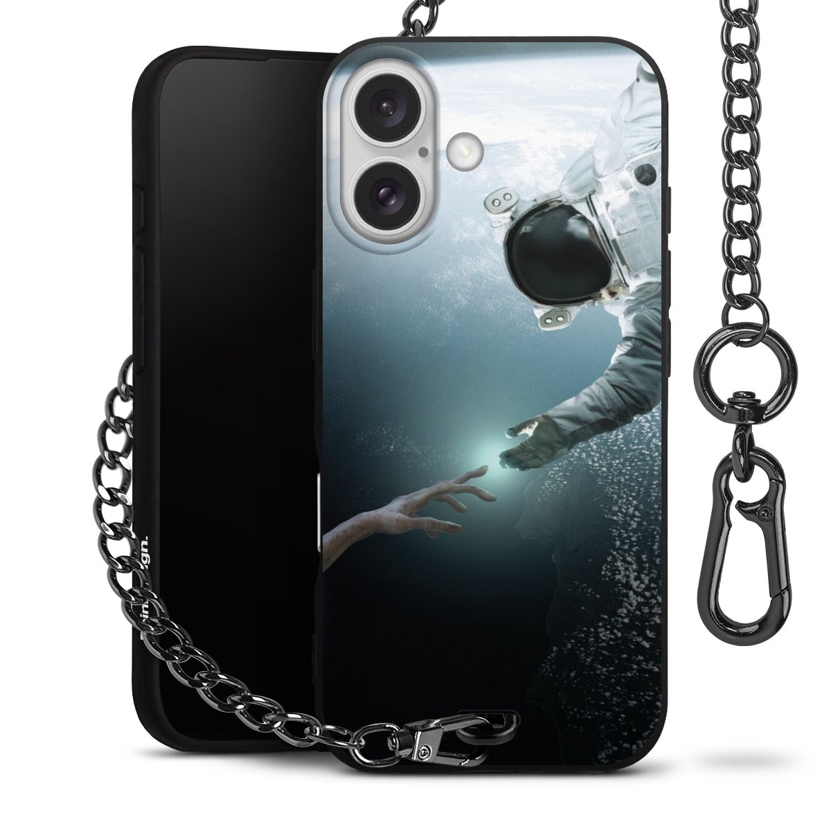 - Mattschwarze Handyhülle mit Metallkette