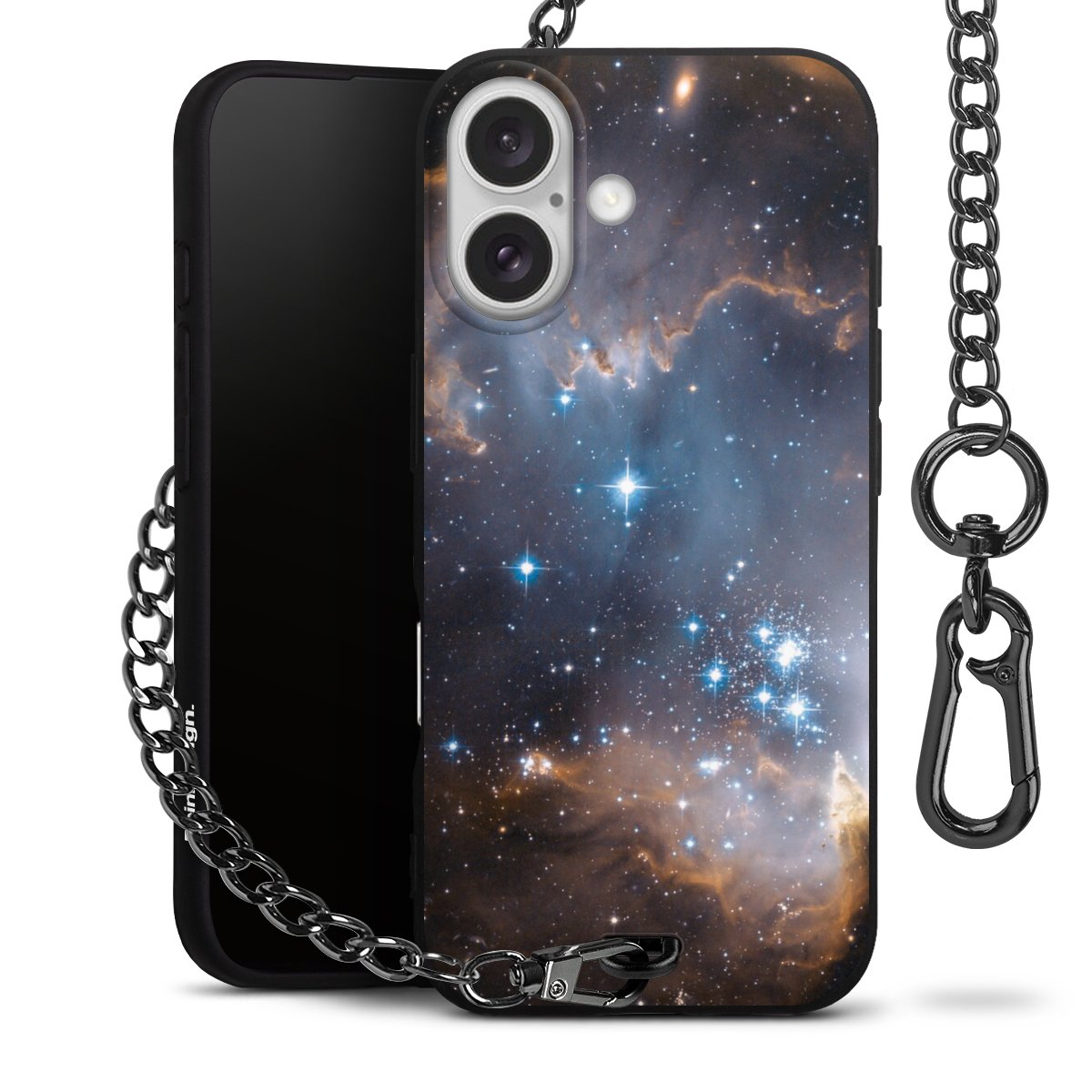 - Mattschwarze Handyhülle mit Metallkette