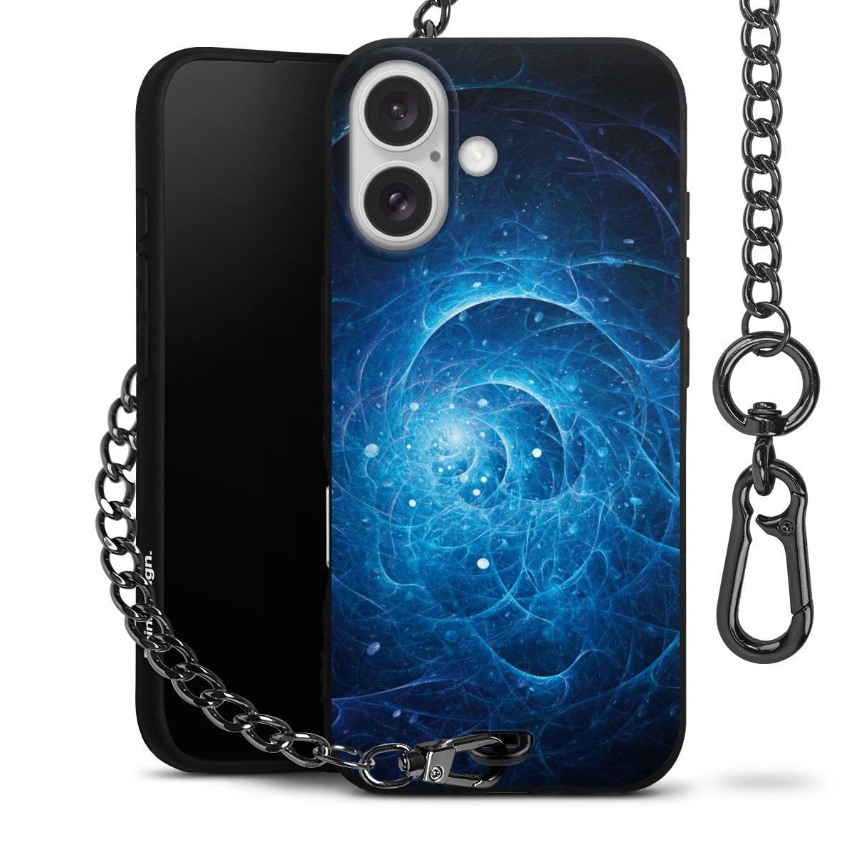 - Mattschwarze Handyhülle mit Metallkette