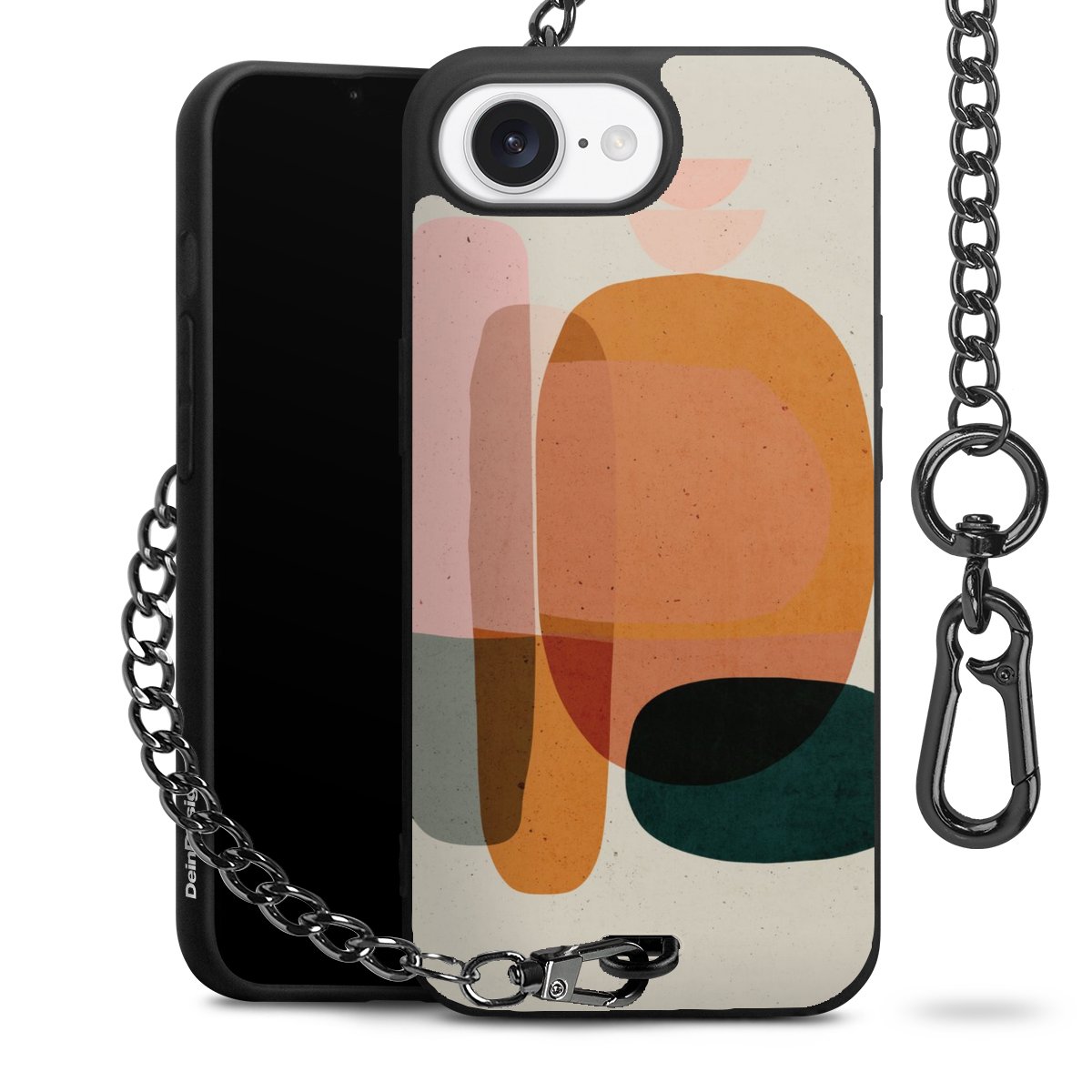 • Mattschwarze Handyhülle mit Metallkette
