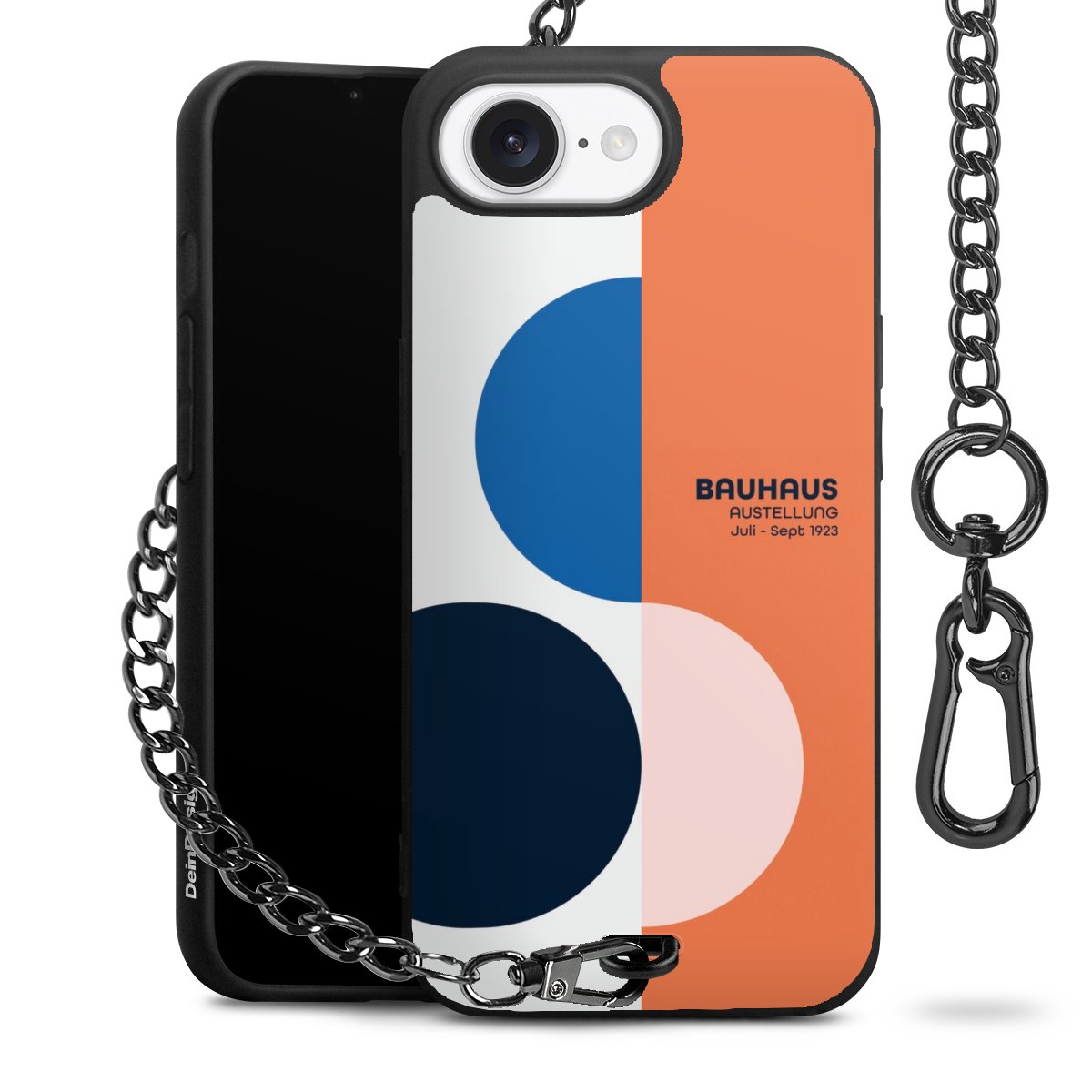 • Mattschwarze Handyhülle mit Metallkette