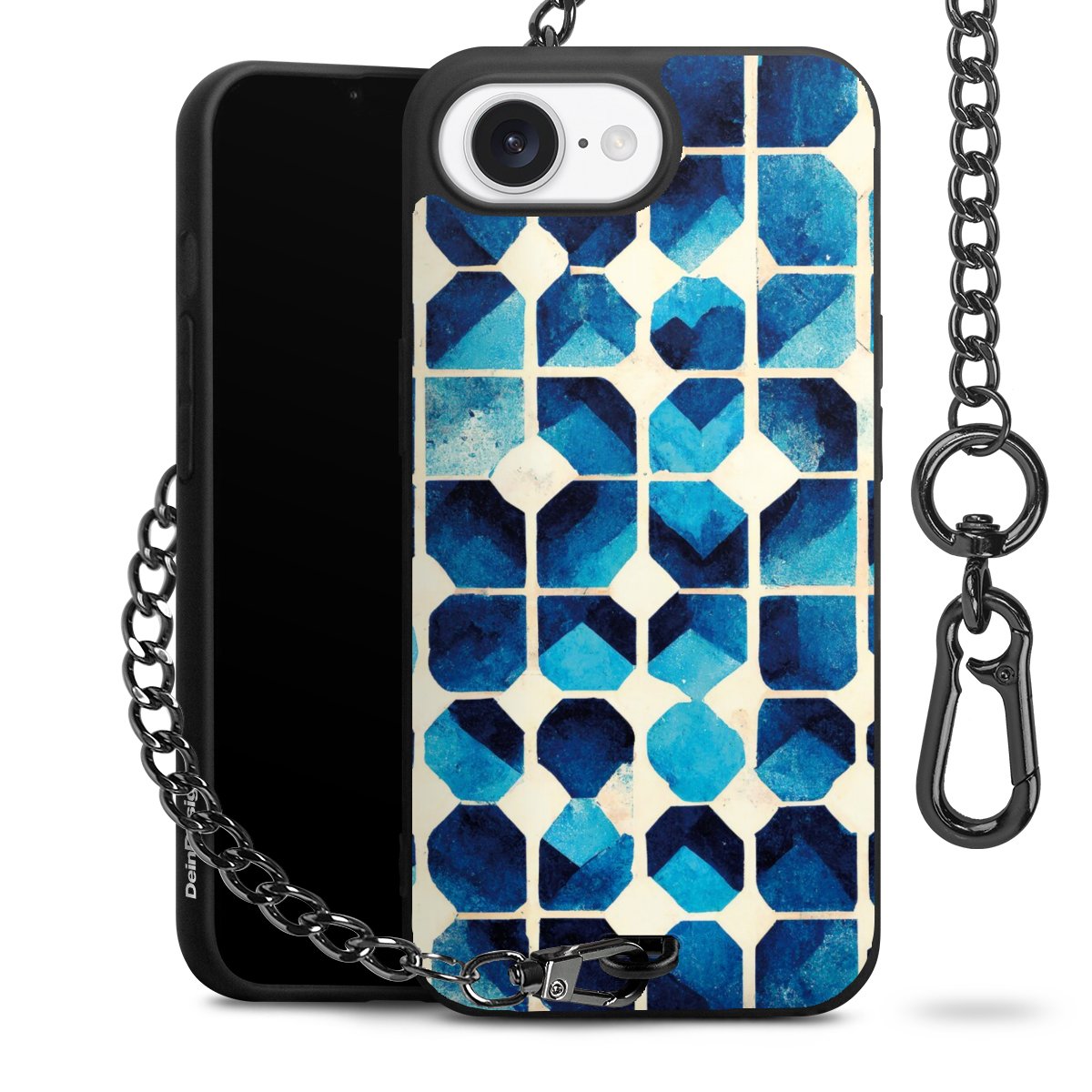• Mattschwarze Handyhülle mit Metallkette