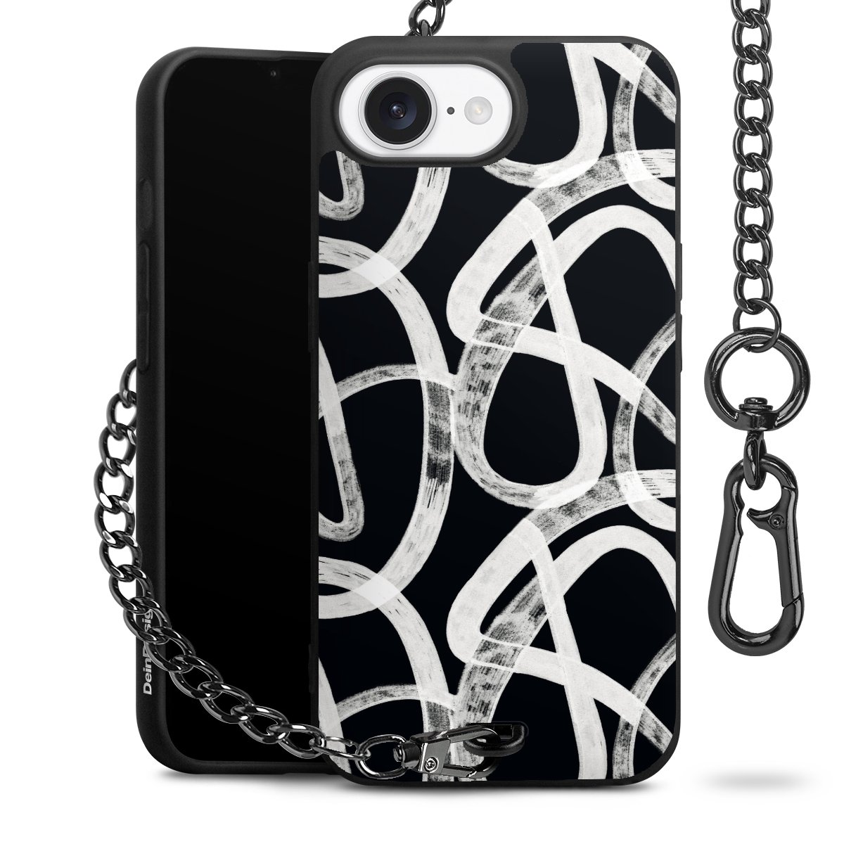 • Mattschwarze Handyhülle mit Metallkette