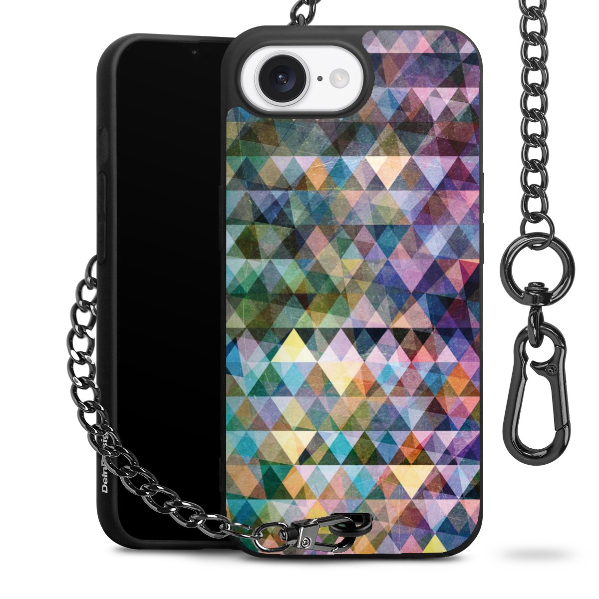 Die mattschwarze Silikon-Handyhülle besteht aus robustem TPU (thermoplastisches Polyurethan). Sie ist flexibel und schützt Dein Smartphone vor Stößen und Kratzern. Die Kette sowie der Karabinerhaken sind aus Metall in Gunmetal-Optik gefertigt. Für dieses Produkt kommen ausschließlich TÜV-geprüfte Materialien zum Einsatz.