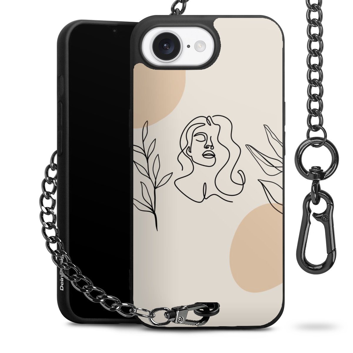 - Mattschwarze Handyhülle mit Metallkette