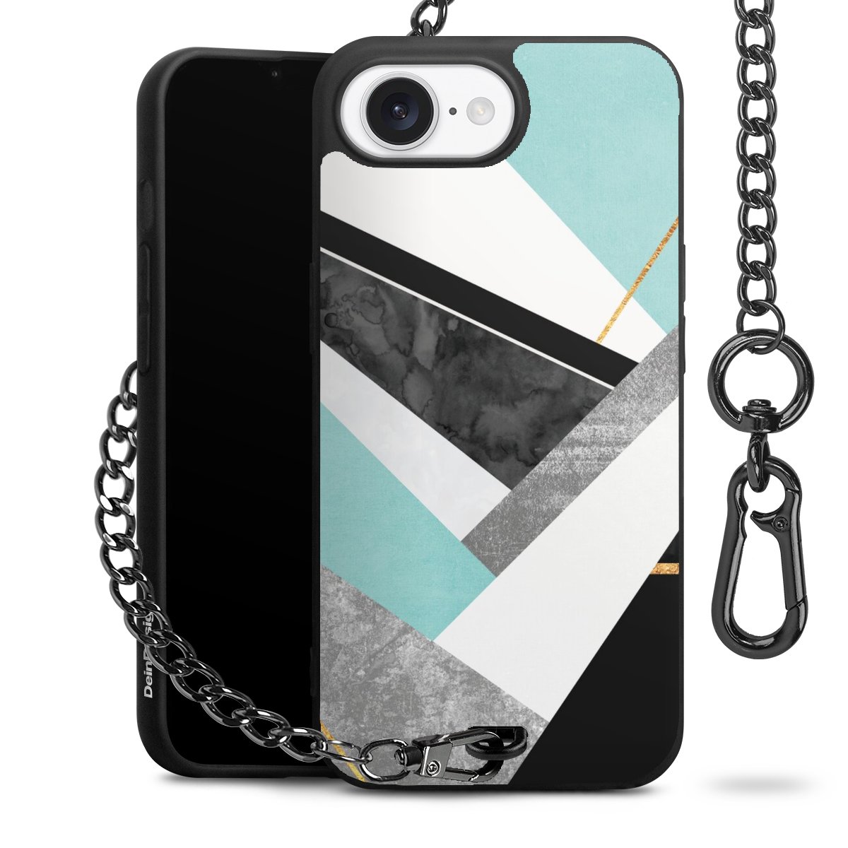 • Mattschwarze Handyhülle mit Metallkette