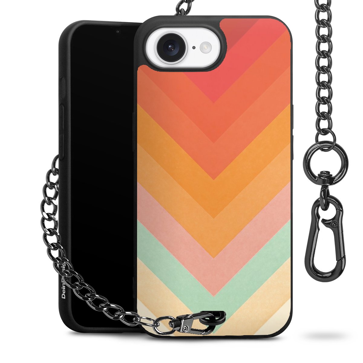 Die mattschwarze Silikon-Handyhülle besteht aus robustem TPU (thermoplastisches Polyurethan). Sie ist flexibel und schützt Dein Smartphone vor Stößen und Kratzern. Die Kette sowie der Karabinerhaken sind aus Metall in Gunmetal-Optik gefertigt. Für dieses Produkt kommen ausschließlich TÜV-geprüfte Materialien zum Einsatz.